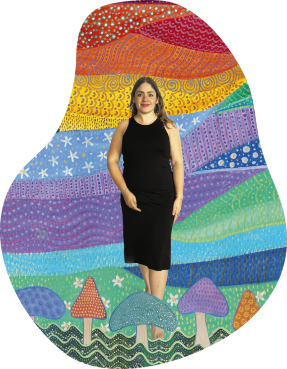 Ele (1994) es una artista visual e ilustradora originaria de Aguascalientes, México, actualmente radicada en Ciudad de México. Su obra es un universo vibrante y simbólico donde lo femenino, lo espiritual y lo onírico se entrelazan con colores intensos, detalles minuciosos y una estética que invita a la introspección.